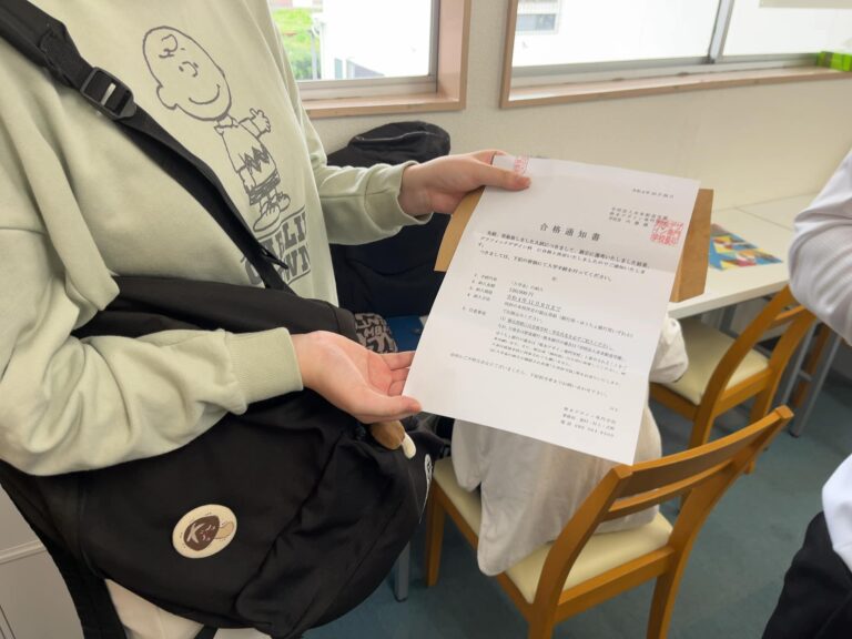 未来高等学校熊本学習センター事務所の3年生に合格通知が到着しました! 先生たちに見せに来てくれました! おめでとう(^^)うれしかったよ 全生徒が希望…